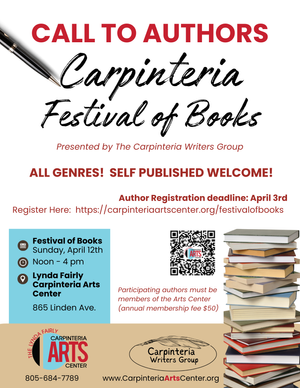 Call to Authors for Festival of Books 2026! Deadline to register is Friday, April 3rd. Must be a Carpinteria Arts Center Member.