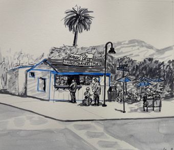 Description: This is a value study done from sitting across of The Spot on Linden Avenue in Carpinteria.