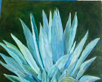Description: Blue is my favorite color, It was fun mixing all the colors to achieve all the different blue hues in this Agave painting.