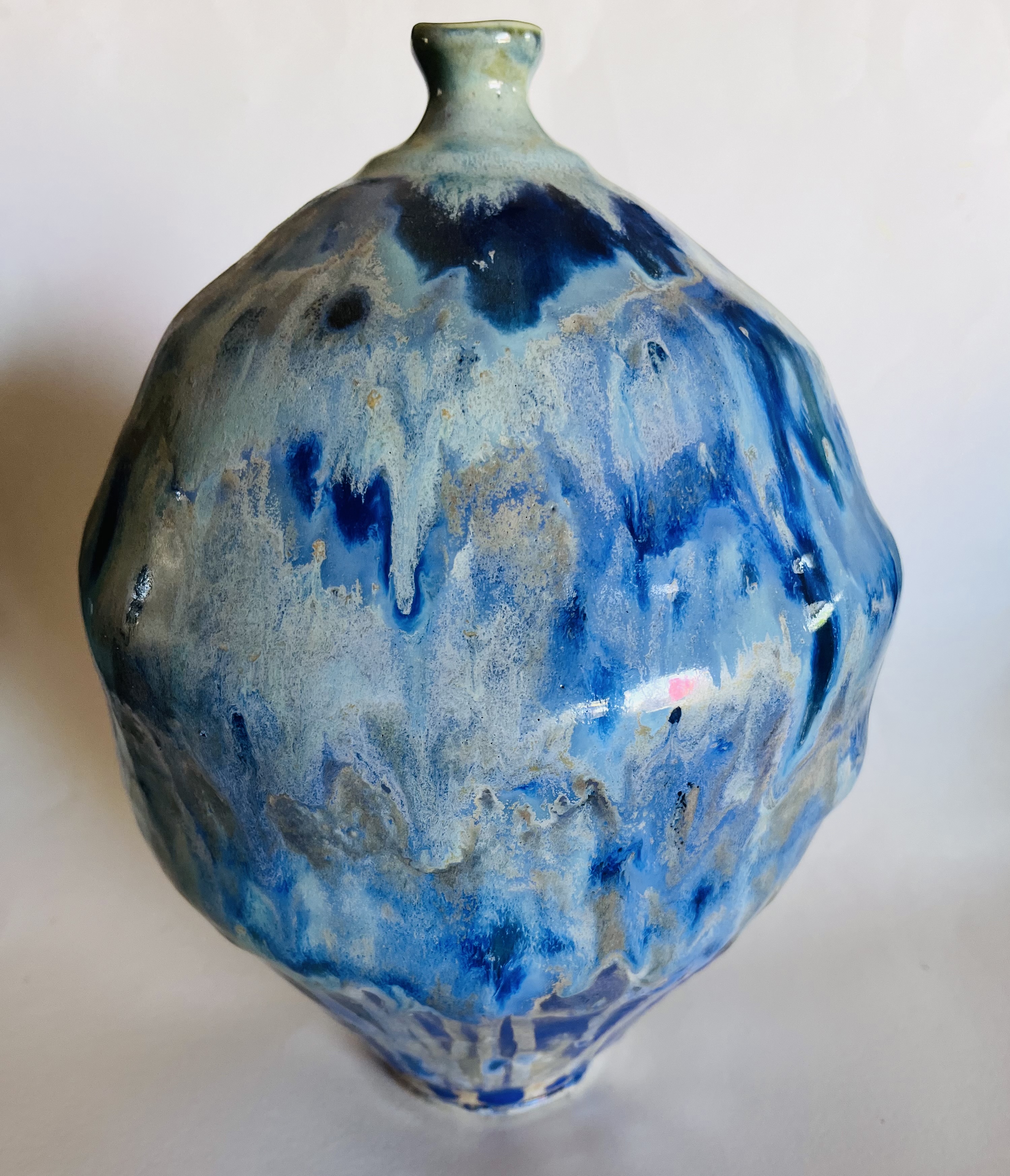 Description: Porcelain high fire ceramic with multiple layers of firing to achieve the wanted hues of blue.
