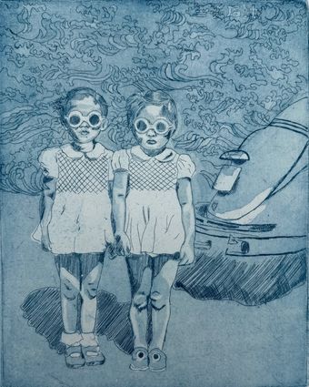 Description: A self portrait with a sibling from childhood. Some retro aspects might bring light to the era, once upon a time in Japan.