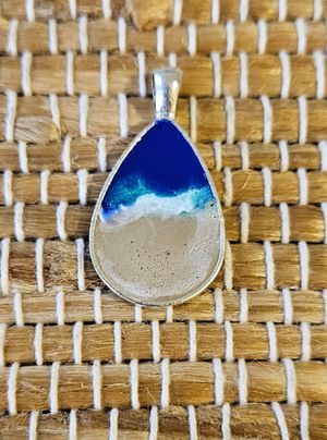 Dimensions: Resin art necklace on polished silver plated 18" chains.