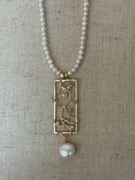 Dimensions: 16 inch pearl chain with a 2 inch extender Gold plated pendant, 1 /14 inch with pearl dangle.