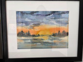 Description: An Alpine Lake under a stormy sky sets the scene. A beautiful, glowing sunset reflects in the water. The silent trees framed the scene. Eventually.