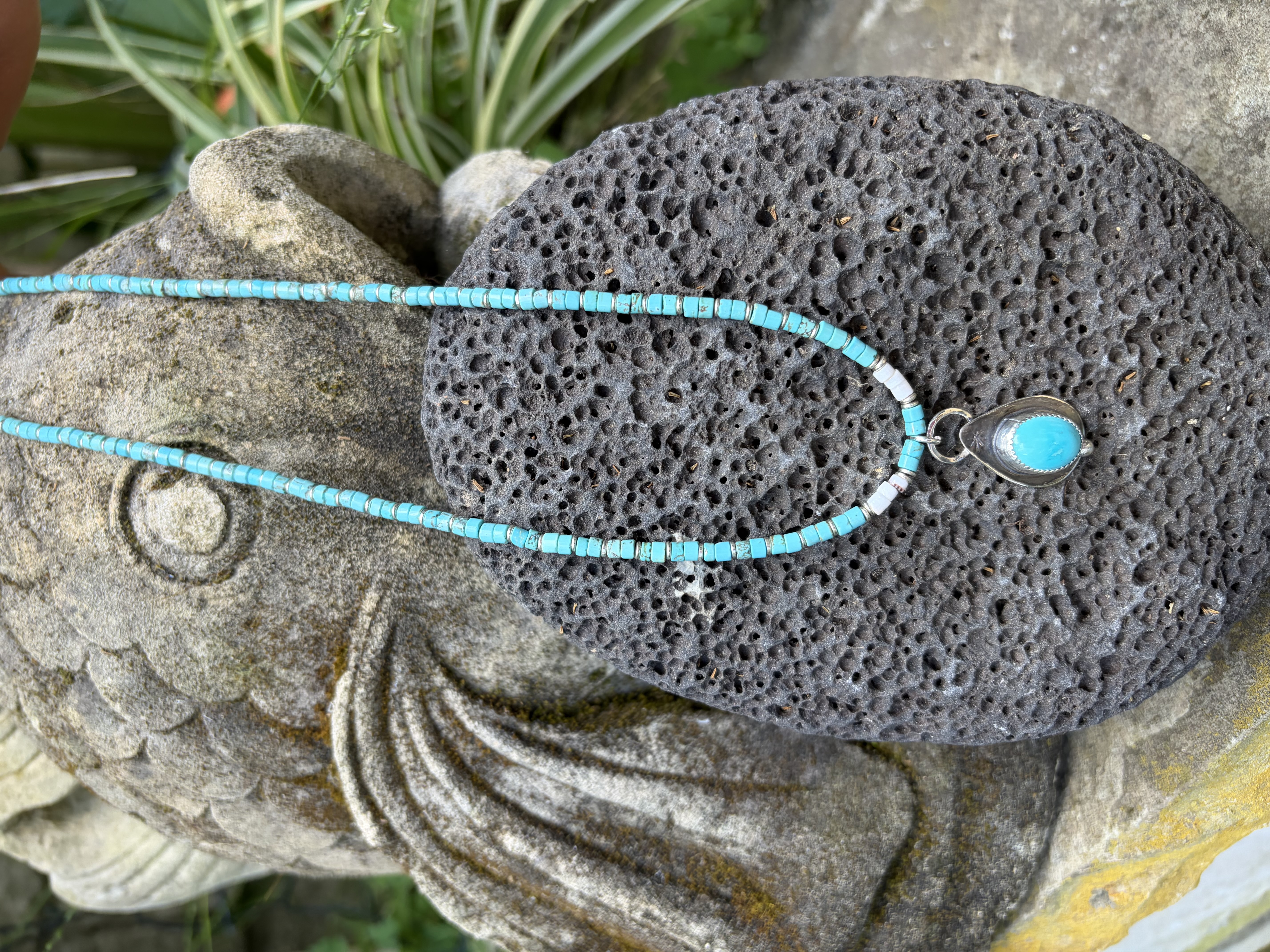 Materials: Turquoise, Silver African Beads, Sterling Silver Handmade Pendant